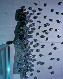 Kumi: How… Like I said before, the most important thing for my doing my work is that I always feel happy. If this isn’t the case, I definitely can’t make anything that will satisfy me. When I’m happy, ideas come to me naturally. I don’t consciously think about ideas. Ideas just pop up, and I sketch them on paper. After that, I move toward making them into real works. First I set the pieces up on the floor with light coming from the side. When I’m finished with that, I move them up onto the wall.