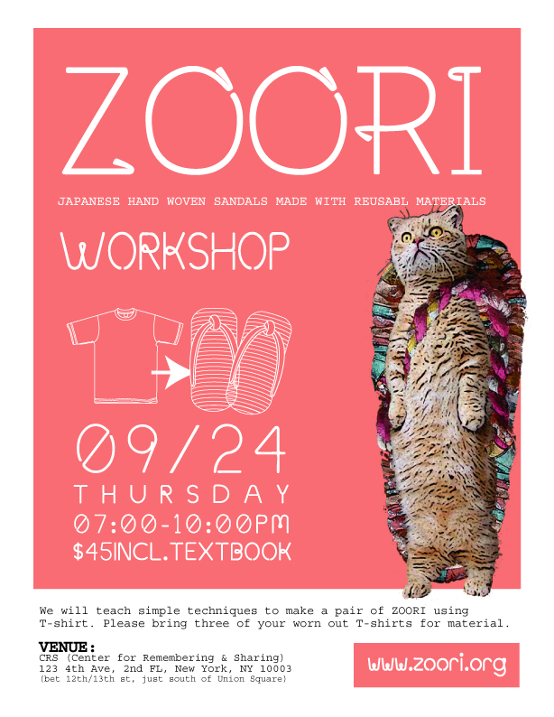 Learn how-to, by following the simple instruction in a very relaxed atmosphere. The best timing to make your own ZOORI, Japanese hand woven cloth sandals.