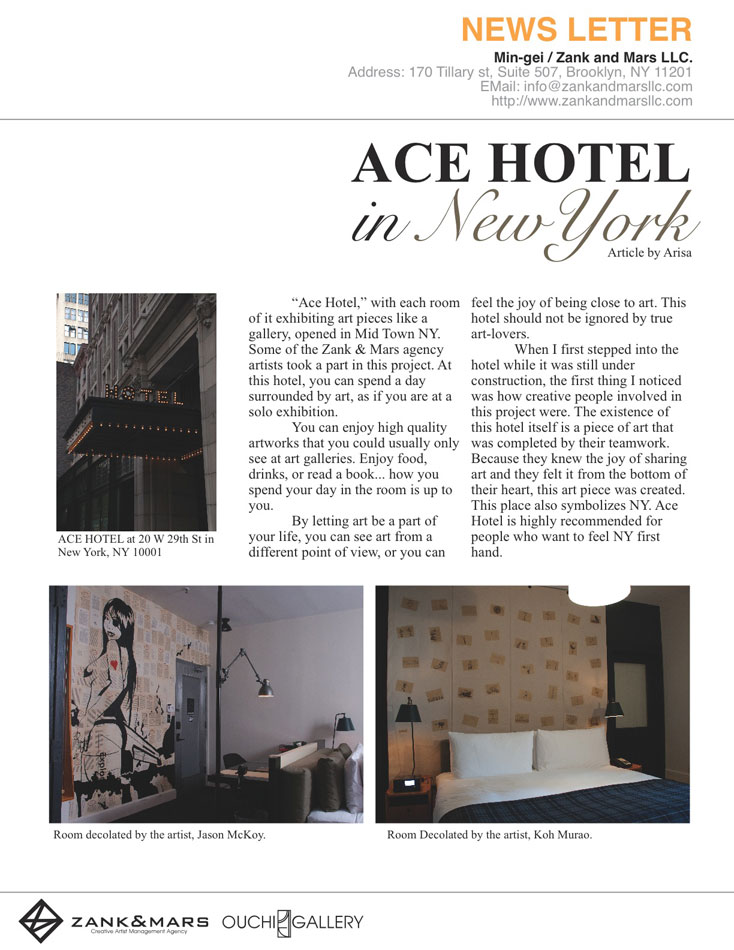 “Ace Hotel,” with each room of it exhibiting art pieces like a gallery, opened in Mid Town NY.