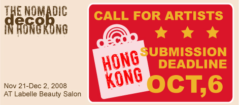 One of the most diversity and unique ECO-friendly contemporary art show, The Nomadic decob (organized by COOL, NY), will be held from November 21 to December 2, 2008, at La Belle Beauty Salon, G/F NO.7 Glenealy Central, in Hong Kong.